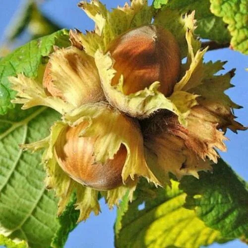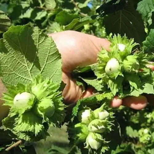 Плоды среднего размера круглой формы. Орехи сферической формы коричневого цвета с полосами и ярко выраженной канавкой по бокам. В обвертке чаще всего 3-5 плодов.Скорлупа коричневого цвета, тонкая, легко раскалываемая. Плодоносит гроздями по 3-5 орехов. Срок созревания: средний, начало сентября. Плодоношение: наступает на 3-4 год.Прекрасный опылитель для большинства сортов.
