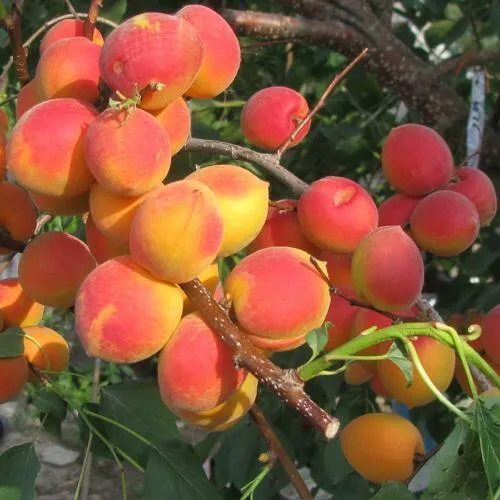 - Эллиптической формы, светло-оранжевого, с преобладающим рубиновым покровом, цвета, покрыты опушением. Кожица грубоватая. Мякоть приятная, умеренно сочная, ярко-оранжевого цвета. Косточка мелкая, легко извлекается;