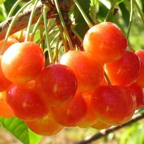 • Сердцевидные, жёлтого, с преобладающим красно-розовым покровом, цвета. Кожица прочная. Мякоть умеренно плотная и сочная, ярко-жёлтого цвета. Сок бесцветен. Косточка среднего размера, легко извлекается;