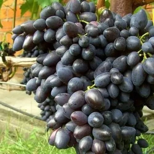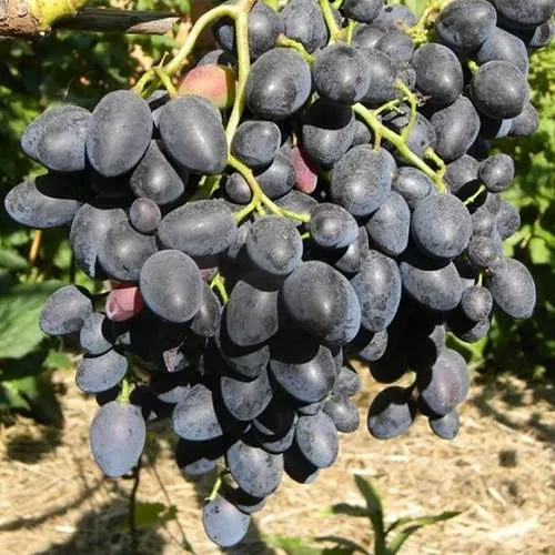 Грозди винограда данного сорта отличаются средней плотностью и иногда бывают рыхлыми. Они имеют коническую или ветвистую форму, весом от 400 до 600 граммов. Ягоды привлекают своим удлиненно-овальным видом и насыщенным синим (черным) цветом. Ягоды весят 6-8 граммов и обладают простым, но изысканным вкусом. Сахаристость плодов составляет 15-17%, а кислотность варьируется от 7 до 8 г/л. Эта гармония делает вкус ягод насыщенным и сочным.